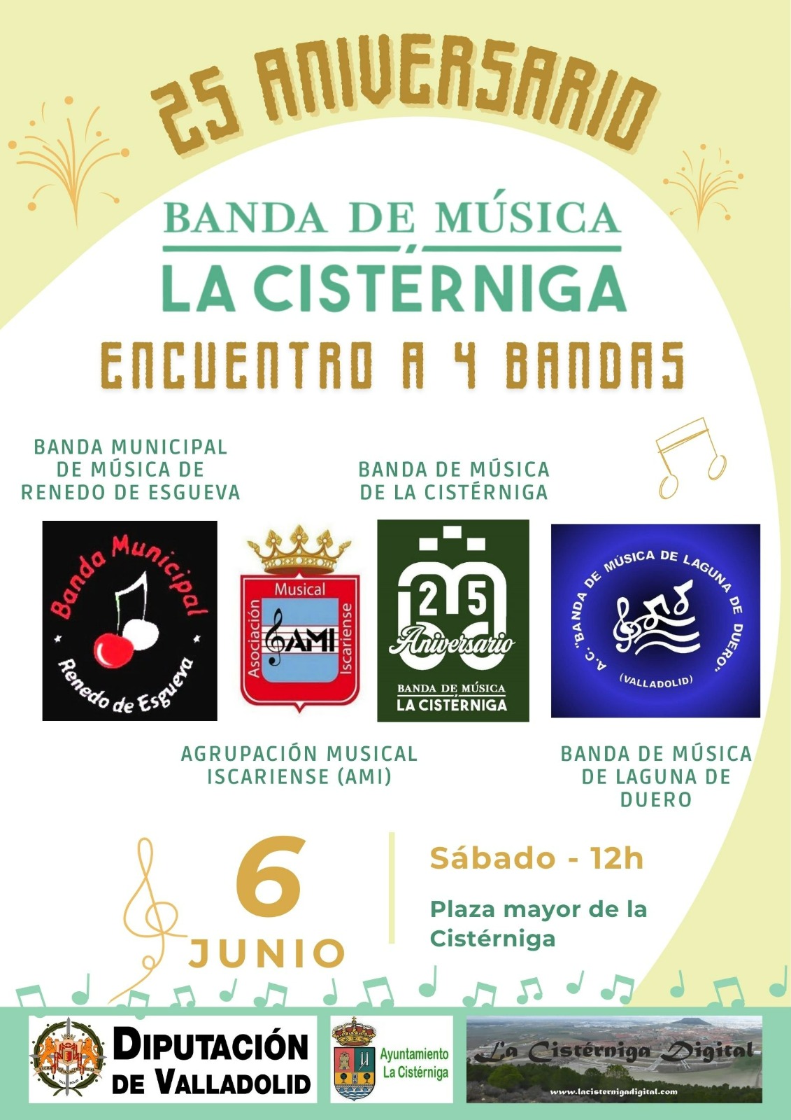 Con motivo del 25 aniversario de nuestra agrupación musical, tendrá lugar un encuentro de bandas en las calles de La Cistérniga, con pasacalles y actuación de todas las bandas participantes:
