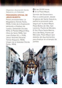 Itinerario: Sermón del Desenclavo, plaza Mayor, plaza Bollos de Hito, San Lorenzo, Puerta de Morales, El Sol, Plaza Santa Marina, Arco del Reloj, Puerta del Mercado, Plaza Mayor (Ayto.), iglesia del Santo Sepulcro.